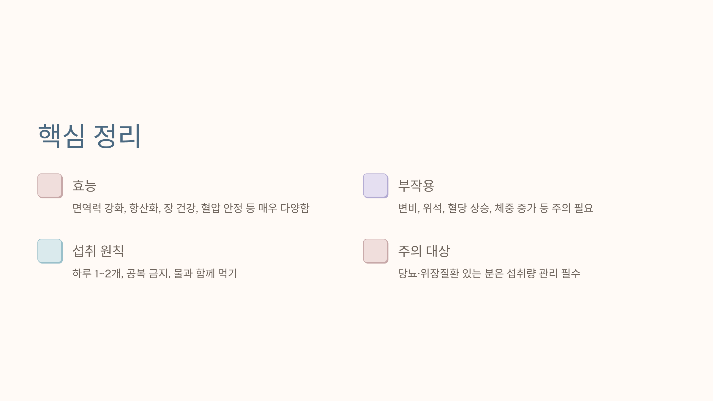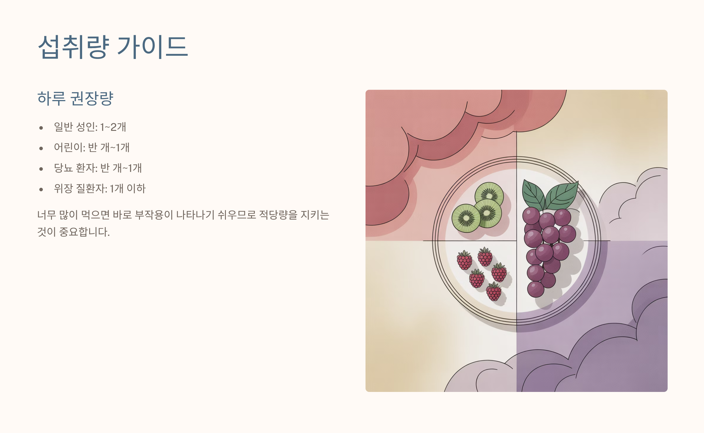 - 당뇨·위장질환 있는 분은 섭취량 관리 필요