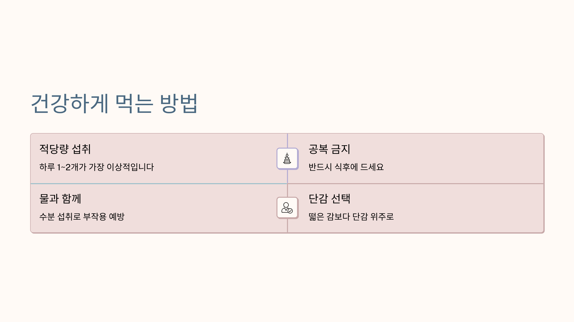 - 공복 섭취 금지, 수분과 함께 먹기 필수