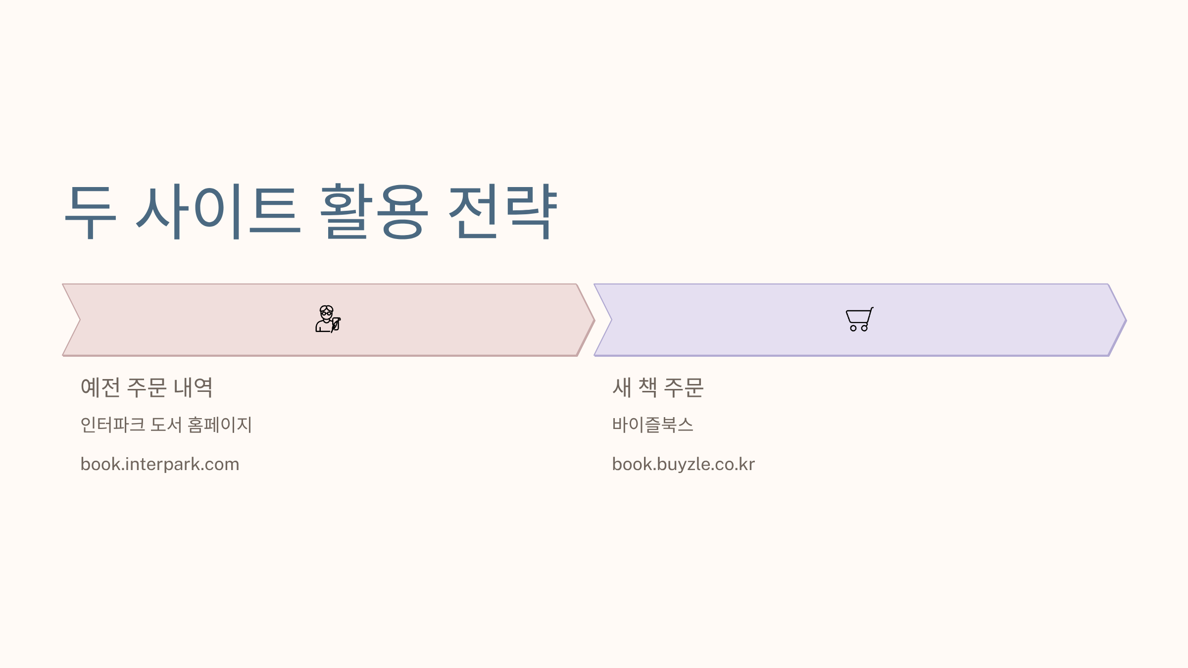 - 예전 주문내역·마이페이지 확인은 인터파크 도서, 새로운 구매는 바이즐북스로 나눠 사용