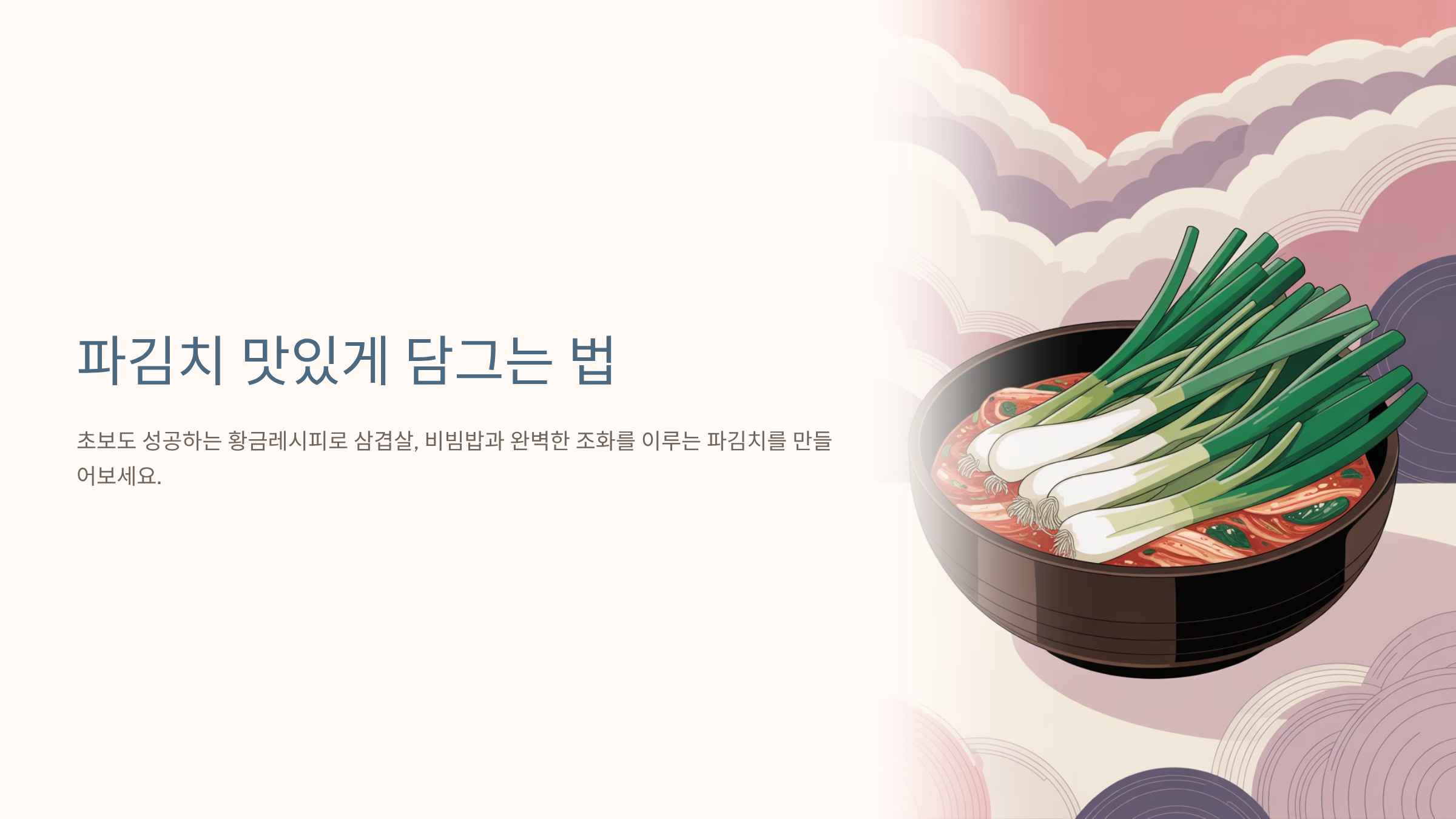 파김치는 어떤 반찬과도 찰떡궁합이죠. 삼겹살에도 잘 어울리고, 밥에 비벼 먹어도 정말 맛있어요. 오늘은 요리를 잘 못해도 누구나 쉽게 따라 할 수 있는 파김치 맛있게 담그는 법을 자세히 알려드릴게요. 준비부터 양념, 숙성 팁까지 그대로 따라 하면 실패 없이 맛있는 파김치가 완성됩니다 😊
