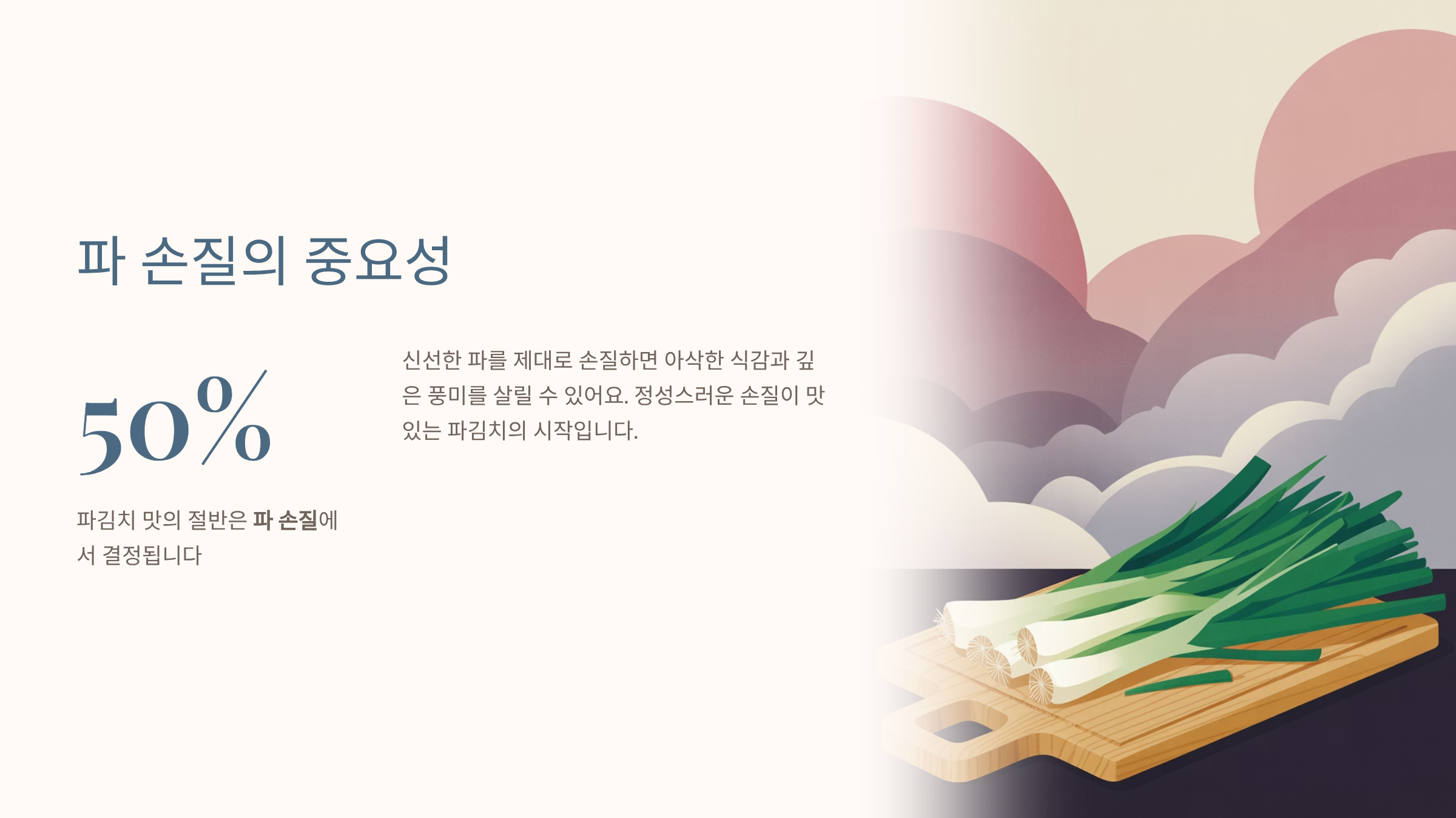 파김치의 맛은 사실 “파 손질”에서 절반이 결정됩니다.