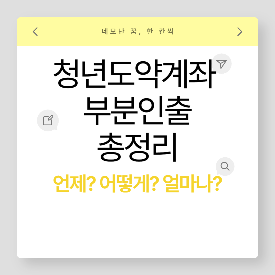 청년도약계좌 일부 인출 방법부터 시기, 한도까지 상세 안내합니다. 계획적인 자금 활용을 원하시는 분들께 딱 맞는 가이드입니다!