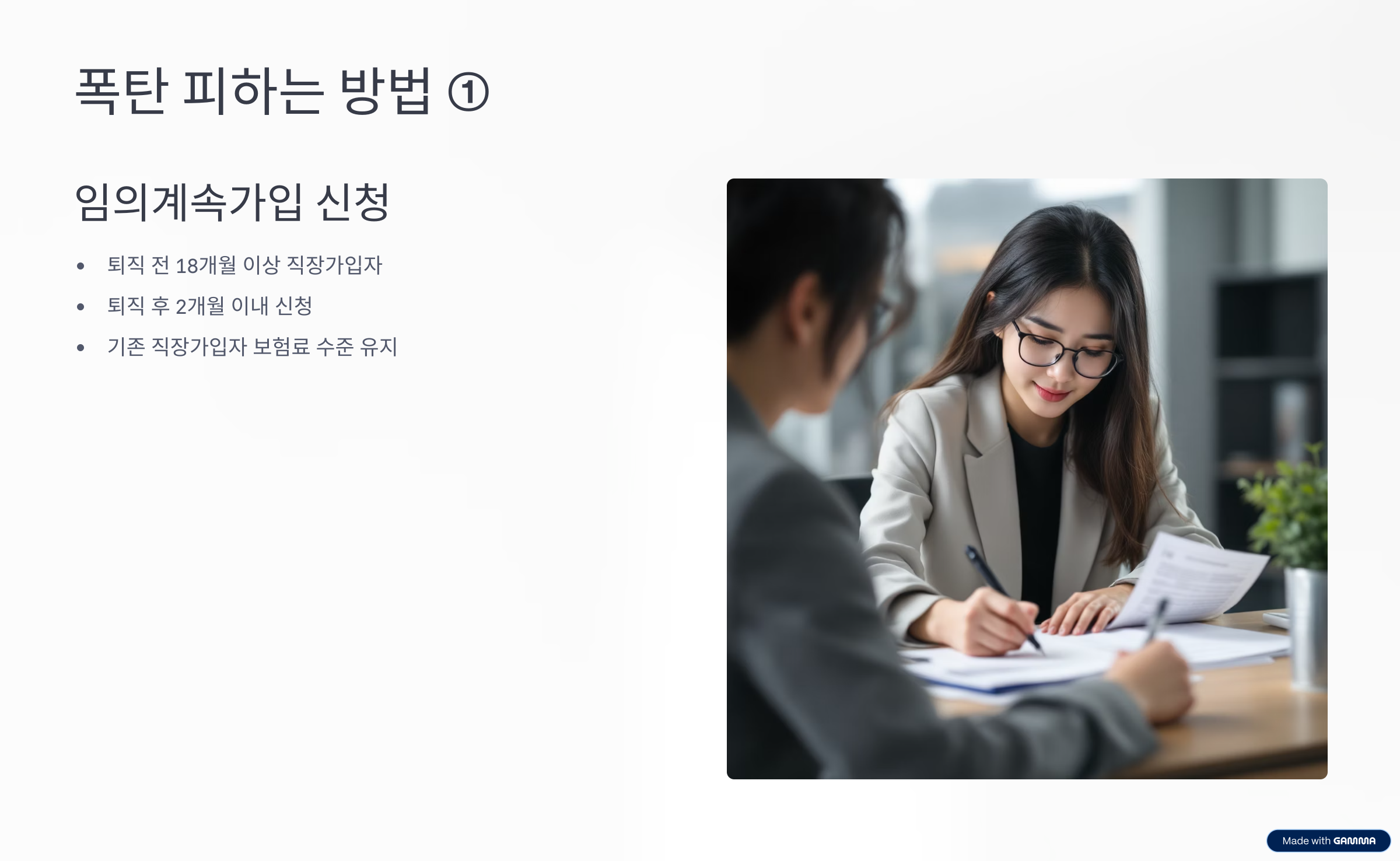 퇴직 후 건강보험료 폭탄을 피하려면 미리 준비가 필요합니다. 임의계속가입과 경감 신청 등 제도를 적극 활용해 부담을 줄이세요.