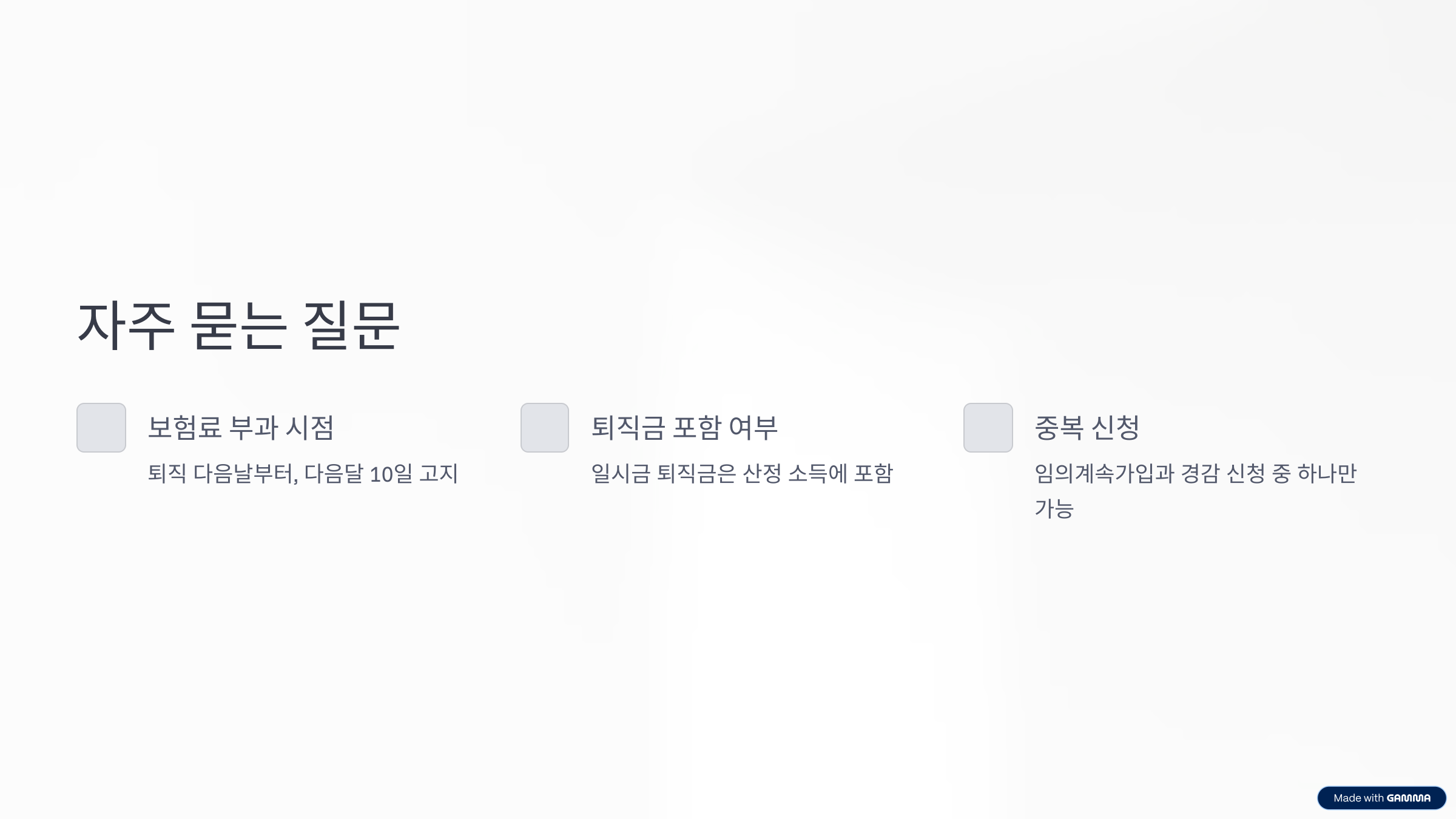 - 퇴직 다음 날부터 지역가입자 건강보험료가 부과되며, 다음 달 10일에 고지됩니다.